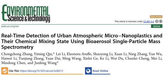 近日,汪俊峰教授团队联合香港城市大学覃意茗助理教授等在Environmental Science & Technology发表题为“Real-Time Detection of Urban Atmospheric Micro–Nanoplastics and Their Chemical Mixing State Using Bioaerosol Single-Particle Mass Spectrometry”的研究成果。文章第一作者为环境科学与工程学院23级博士生张崇崇,覃意茗助理教授、汪俊峰教授共同为通讯作者。
