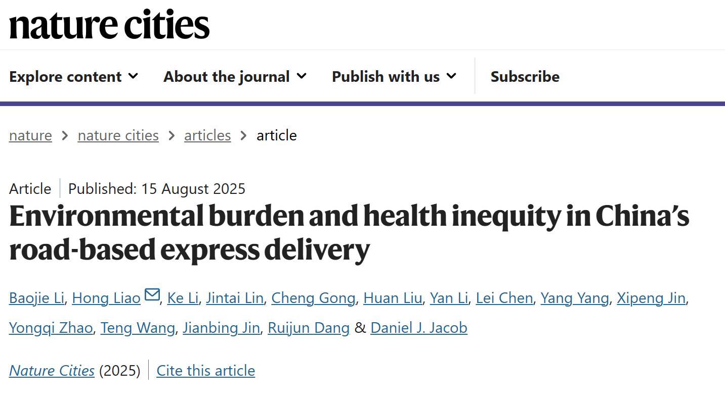 环科院廖宏教授团队在《Nature Cities》发表我国快递运输业排放及其环境效应研究成果