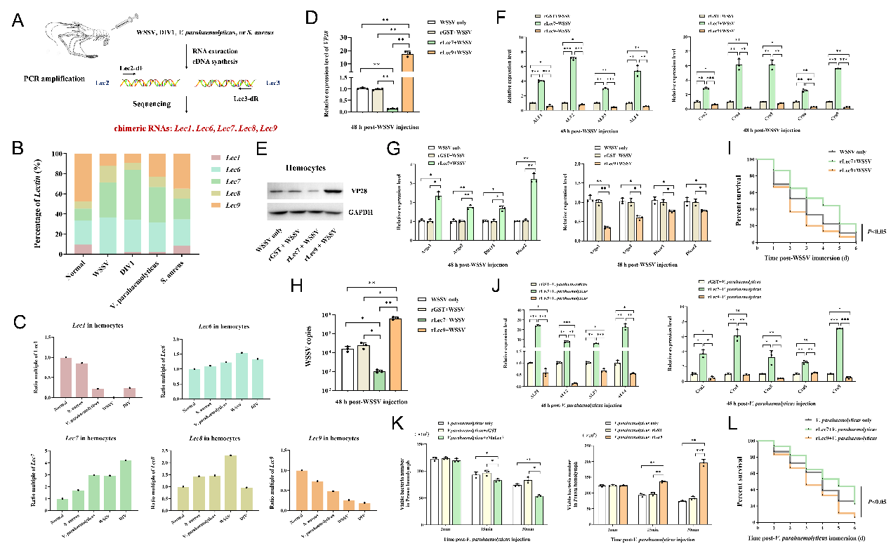 日本沼虾(Macrobrachium nipponense)作为我国重要的淡水经济虾类,在养殖过程中常面临白斑综合征病毒、副溶血弧菌等多种病原的威胁,导致病害频发,造成巨大经济损失,目前尚无有效防控手段。模式识别受体通过识别病原,启动免疫防御,C-型凝集素作为一种重要的模式识别受体参与无脊椎动物先天免疫防御。有限的模式识别受体如何识别多种不同的病原,一直是先天免疫研究领域有待解决的科学问题。本研究首次发现,两个位于不同基因组座位的C型凝集素基因,通过选择性反式剪接与转录滑动两种机制,形成11种不同的嵌合RNA异构体,增加了模式识别受体多样性。