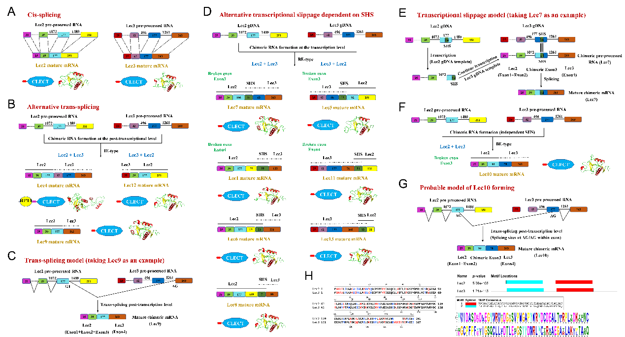 图1. MnLec2与MnLec3来源嵌合RNA的形成机制。