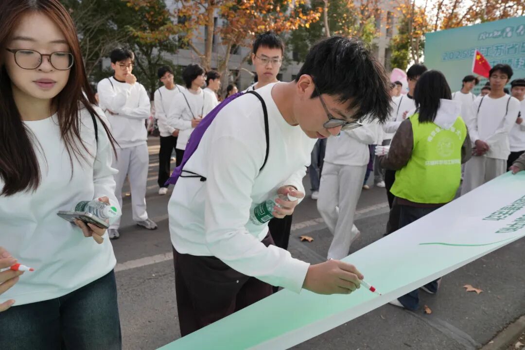 12月6日,以“跑燃青春,碳绘未来”为主题的江苏省碳达峰碳中和系列科普活动在jinnian金年会举行,南信大师生代表,携手来自省内5所高校的师生代表、4 家省级学会代表、环保志愿者及低碳行业从业者齐聚一堂,通过签名承诺、绿色慢跑、科普研学三重形式,让“双碳”理念走进人心。